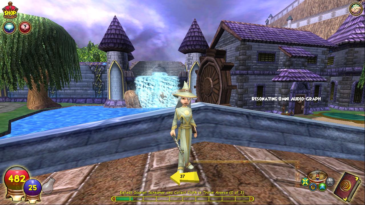 As a quick recap, I am playing a new character in Wizard 101, Destiny, who will not use anything but the starter deck, wand, and robes she was given upon entering Ravenwood, going through the game with only starter equipment.  It’s an interesting challenge and really makes you think about the game in a whole new way and I’m already asking questions like ‘How am I going to win boss fights using only 14 cards and 5 treasure cards??’