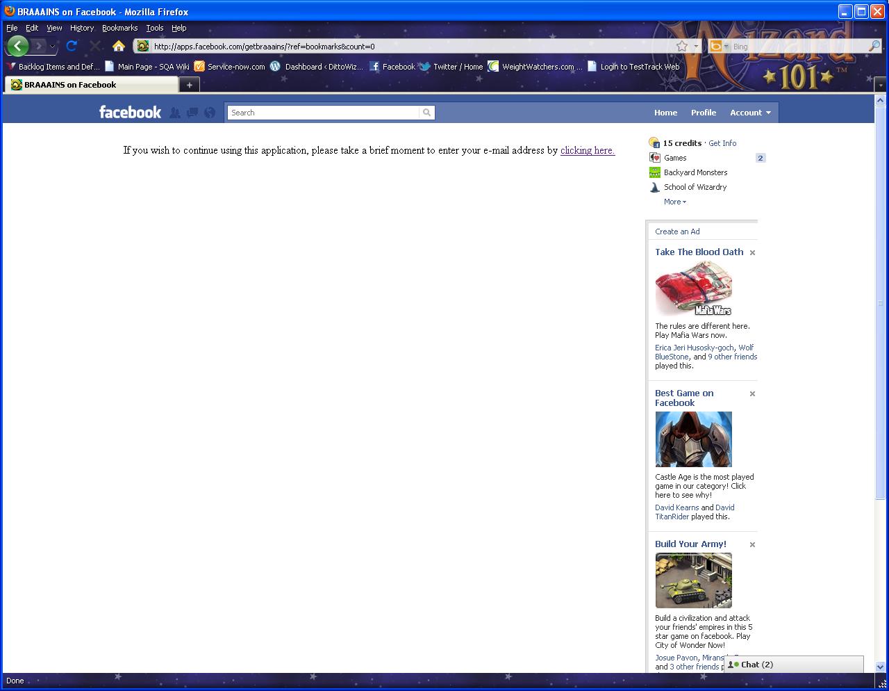 So it tells me I need to ‘click here and enter my email address’ – well that’s odd, I thought to myself. Facebook already has my email address, obviously – it’s my login. Why would Braaains need me to enter it again? Well, let’s click and see…