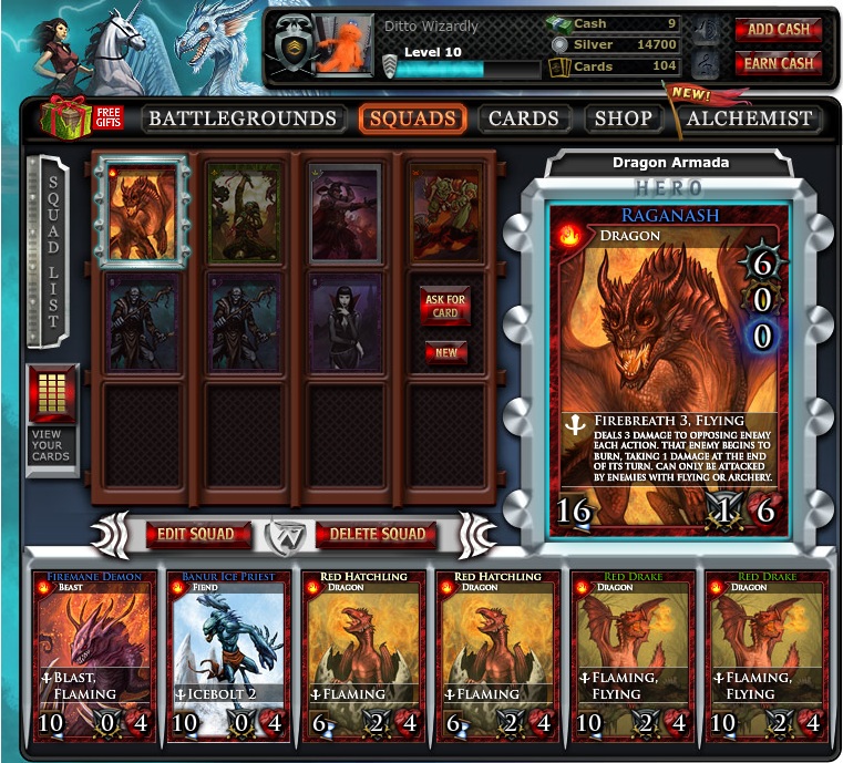 For larger battles, however – the three or four squad battles – I’ve found that you need squads set to specific tasks. I’ll normally have one squad of fast casting times, one squad (usually my dragon deck) of ‘heavy hitters’ – high casting time but serious firepower and special abilities – and then at least one deck focused on indirect damage skills like Zap and Snipe, to take care of any flying or blocking opponents. If it’s a four squad battle I’ll round it out with a solid defensive squad.