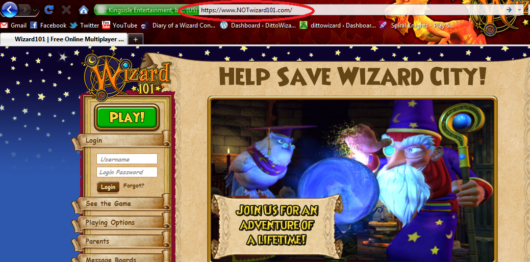 - Second, if you get an email telling you to log into a website to correct or change something, look very closely at the sender’s email address and the address it’s trying to send you to. Instead of wizard101.com it might be wizardlOl.com – it doesn’t look too different, so you have to be careful.